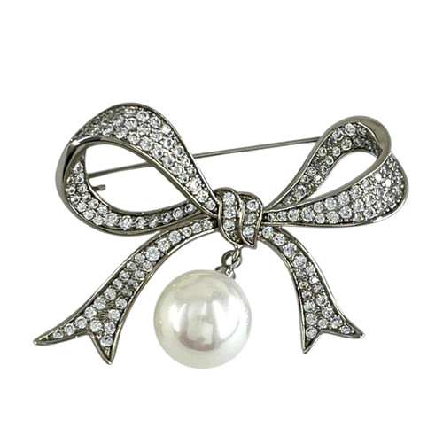 گل سینه زنانه ژوپینگ مدل پاپیون و مروارید کد G4185