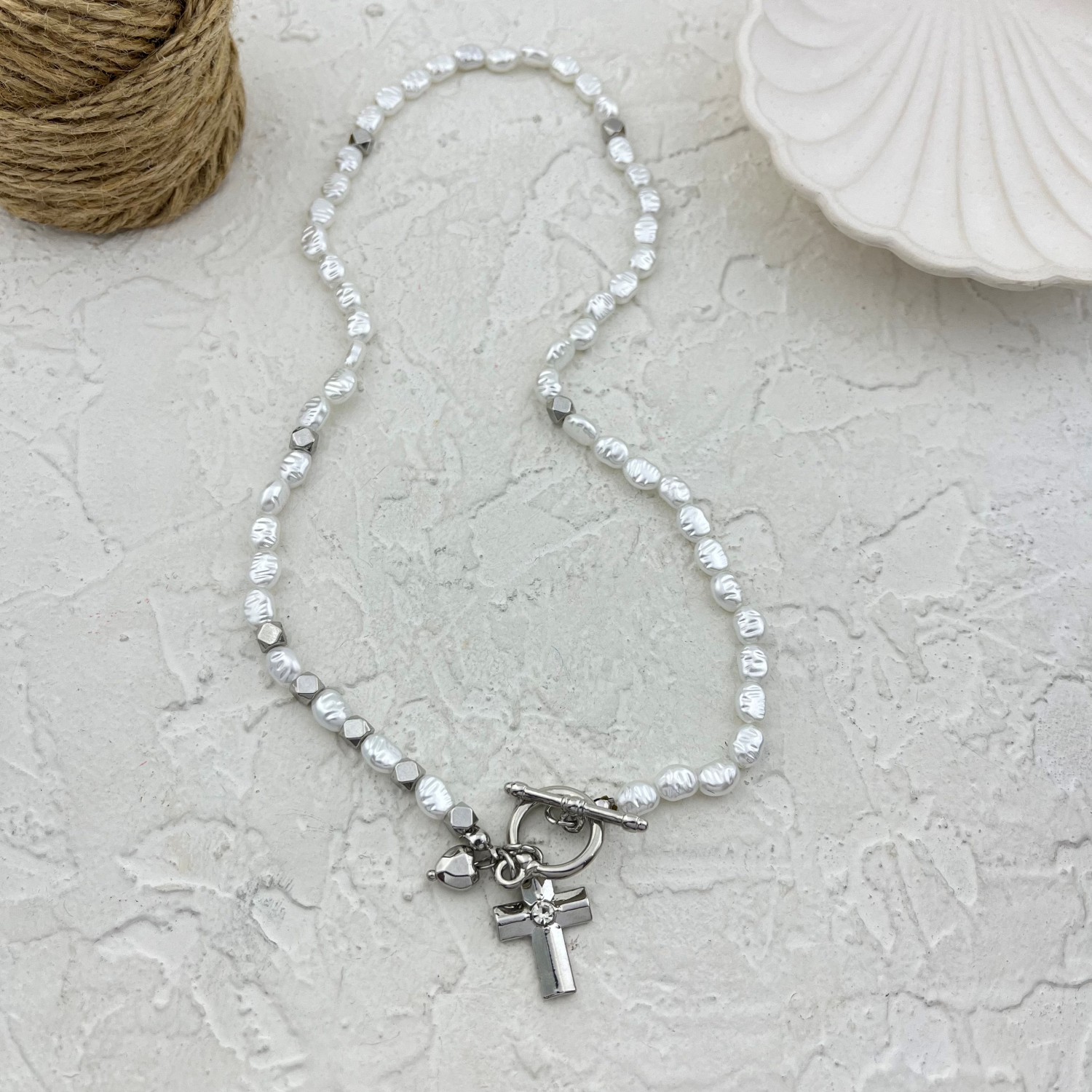 گردنبند زنانه مدل مروارید صلیب کد N5036