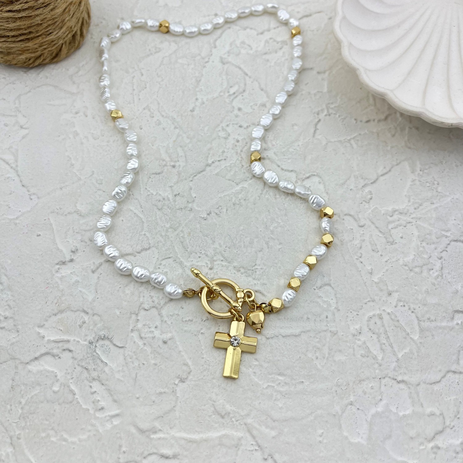 گردنبند زنانه مدل مروارید و صلیب کد N5035