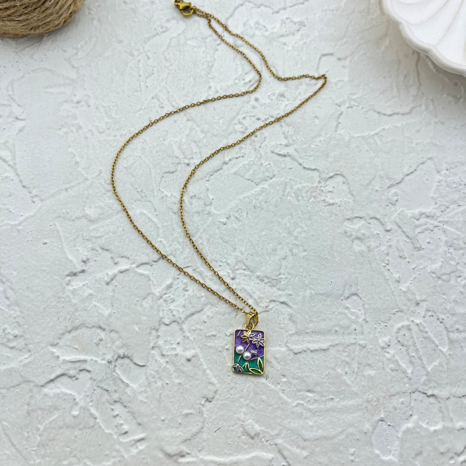 گردنبند زنانه میناکاری مدل گل و مروارید کد N4998