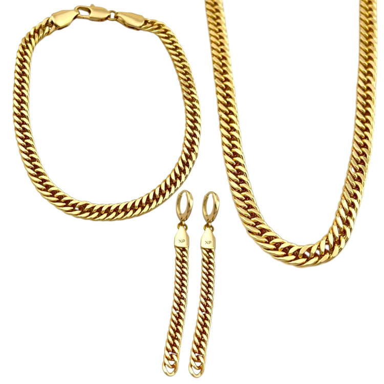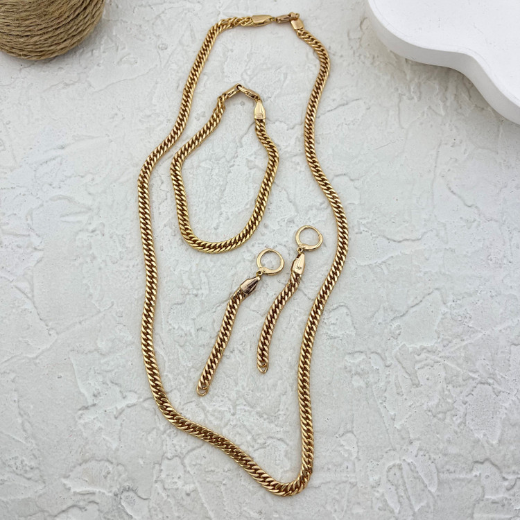 جزئیات: طول 45 سانتیمتر در 5 میلیمتر و دستبند 19 در 5 میلیمتر و گوشواره 68 در 5 میلیمتر / رنگ ثابت و ضد حساسیت