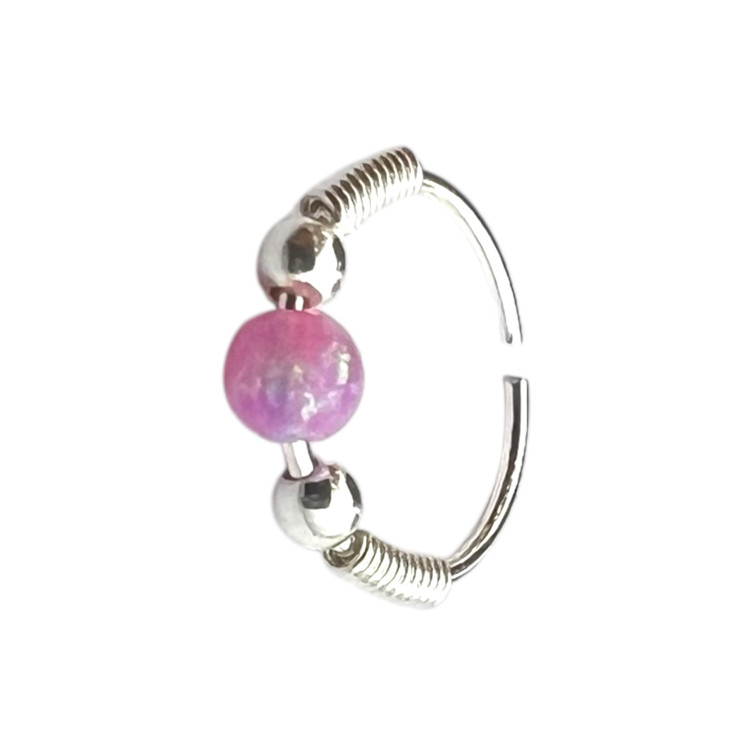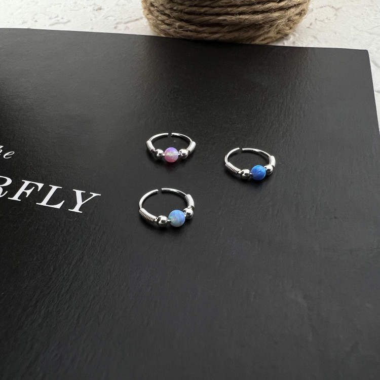 پیرسینگ بینی زنانه نقره مدل حلقه سنگ اوپال کد P4809
