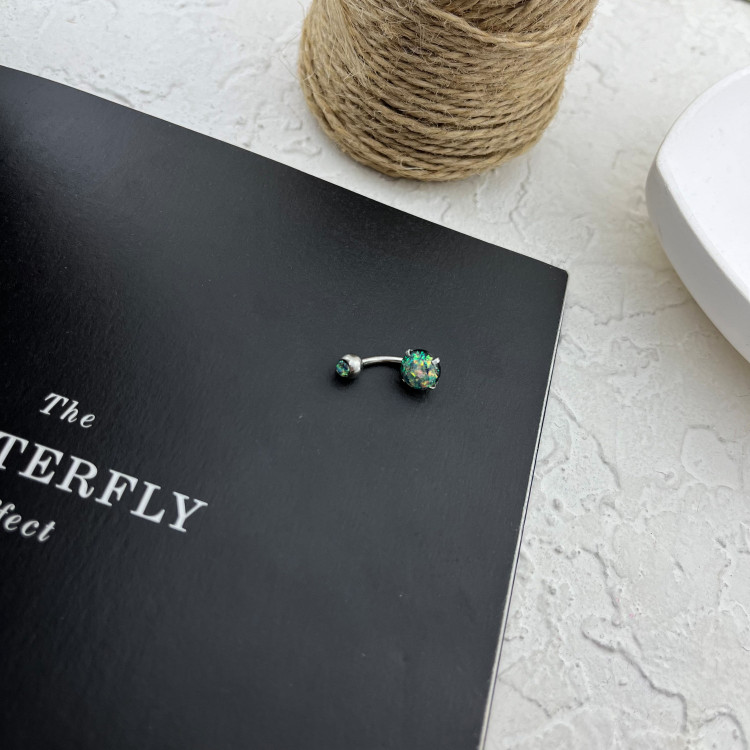 پیرسینگ ناف استیل زنانه مدل سنگ اوپال کد P4855