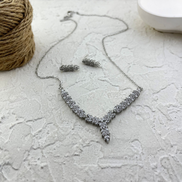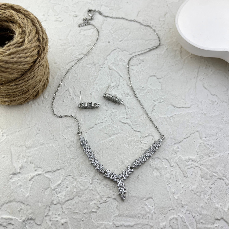 جزئیات: 45 سانتیمتر زنجیر و پلاک 6 سانتیمتر و پهنا حدود 6 میلیمتر و گوشواره حدود 19 میلیمتر در 6 میلیمتر / رنگ ثابت و ضد حساسیت