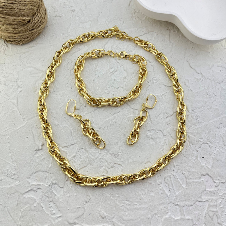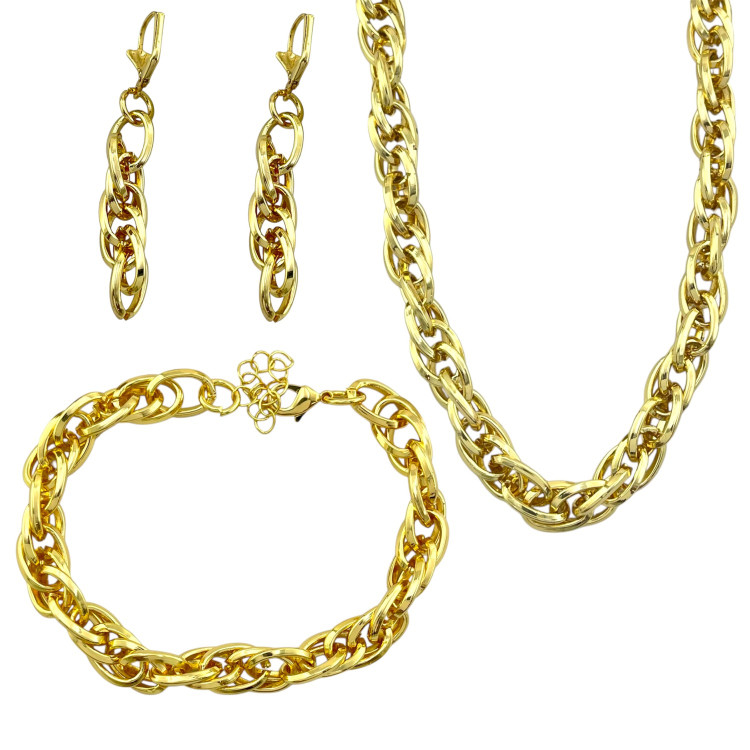 جزئیات: 45 سانتیمتر زنجیر و پهنا حدود 10 میلیمتر و دستبند 21 سانتیمتر در 10 میلیمتر و گوشواره حدود 10 میلیمتر در 6 میلیمتر / رنگ ثابت و ضد حساسیت