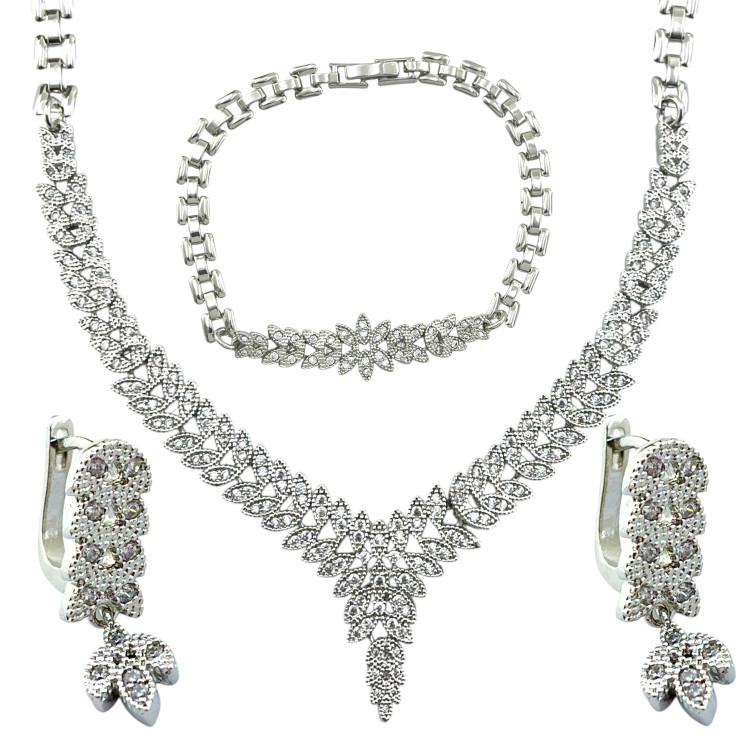 جزئیات: 45 سانتیمتر زنجیر و پهنا حدود 30 میلیمتر و دستبند 19 سانتیمتر در 13 میلیمتر و گوشواره حدود 27 میلیمتر در 13 میلیمتر / رنگ ثابت و ضد حساسیت