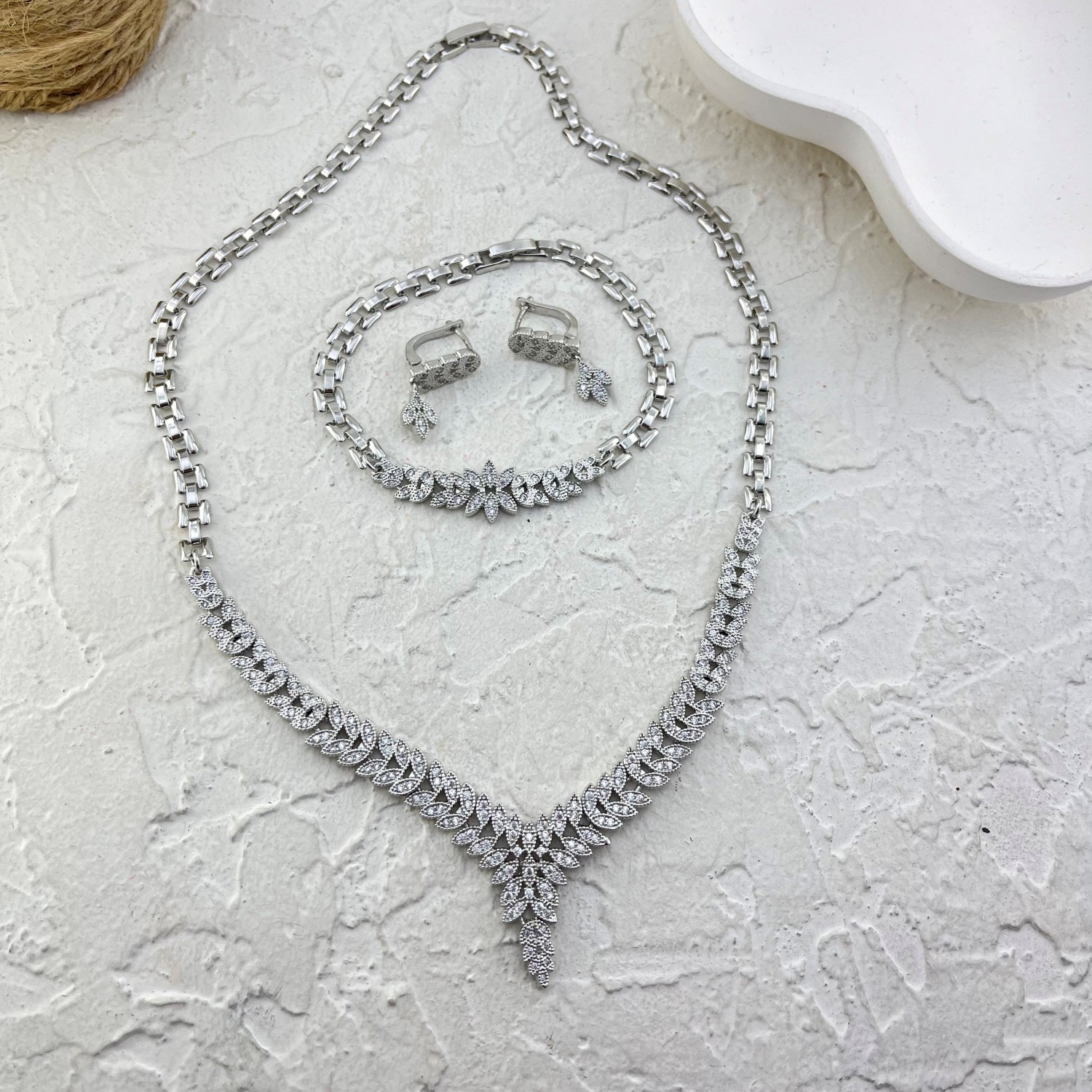 جزئیات: 45 سانتیمتر زنجیر و پهنا حدود 30 میلیمتر و دستبند 19 سانتیمتر در 13 میلیمتر و گوشواره حدود 27 میلیمتر در 13 میلیمتر / رنگ ثابت و ضد حساسیت