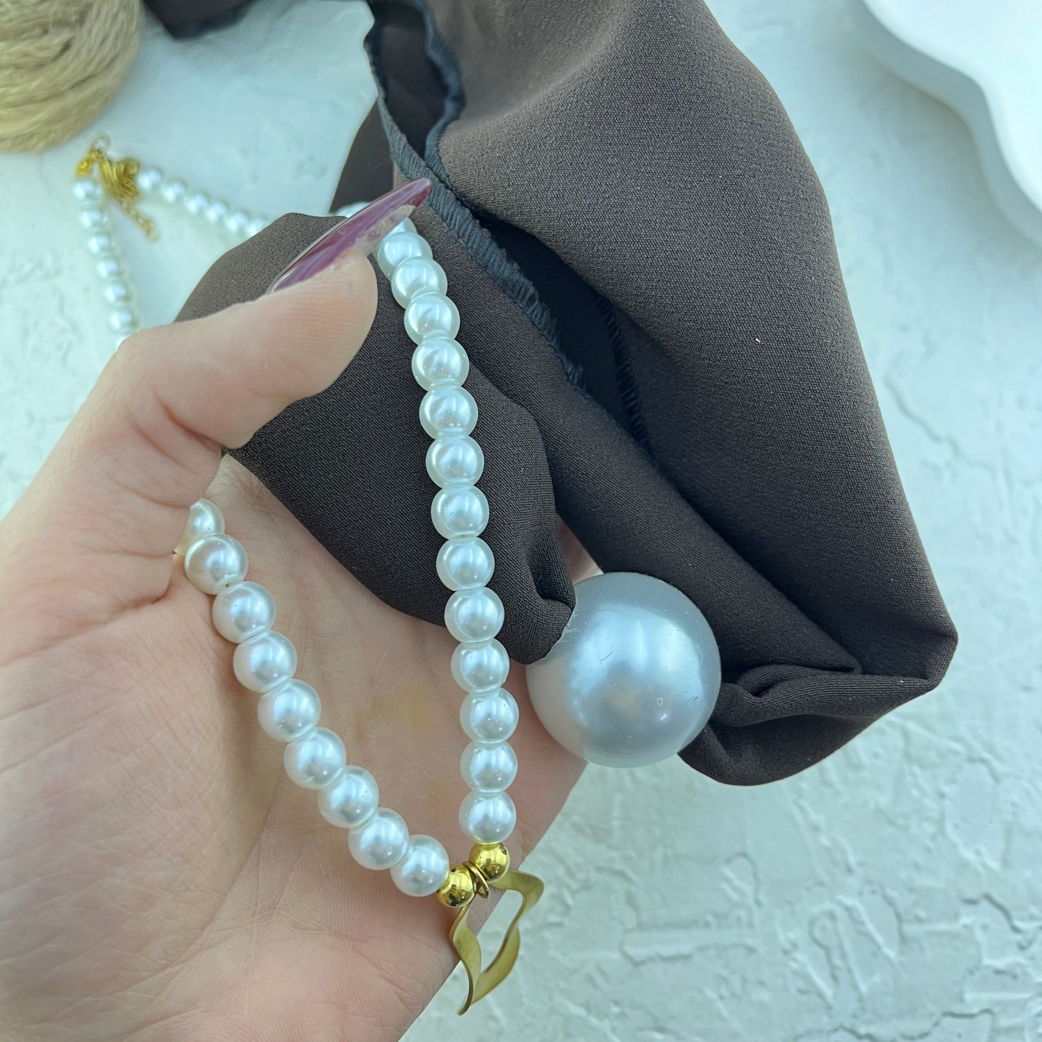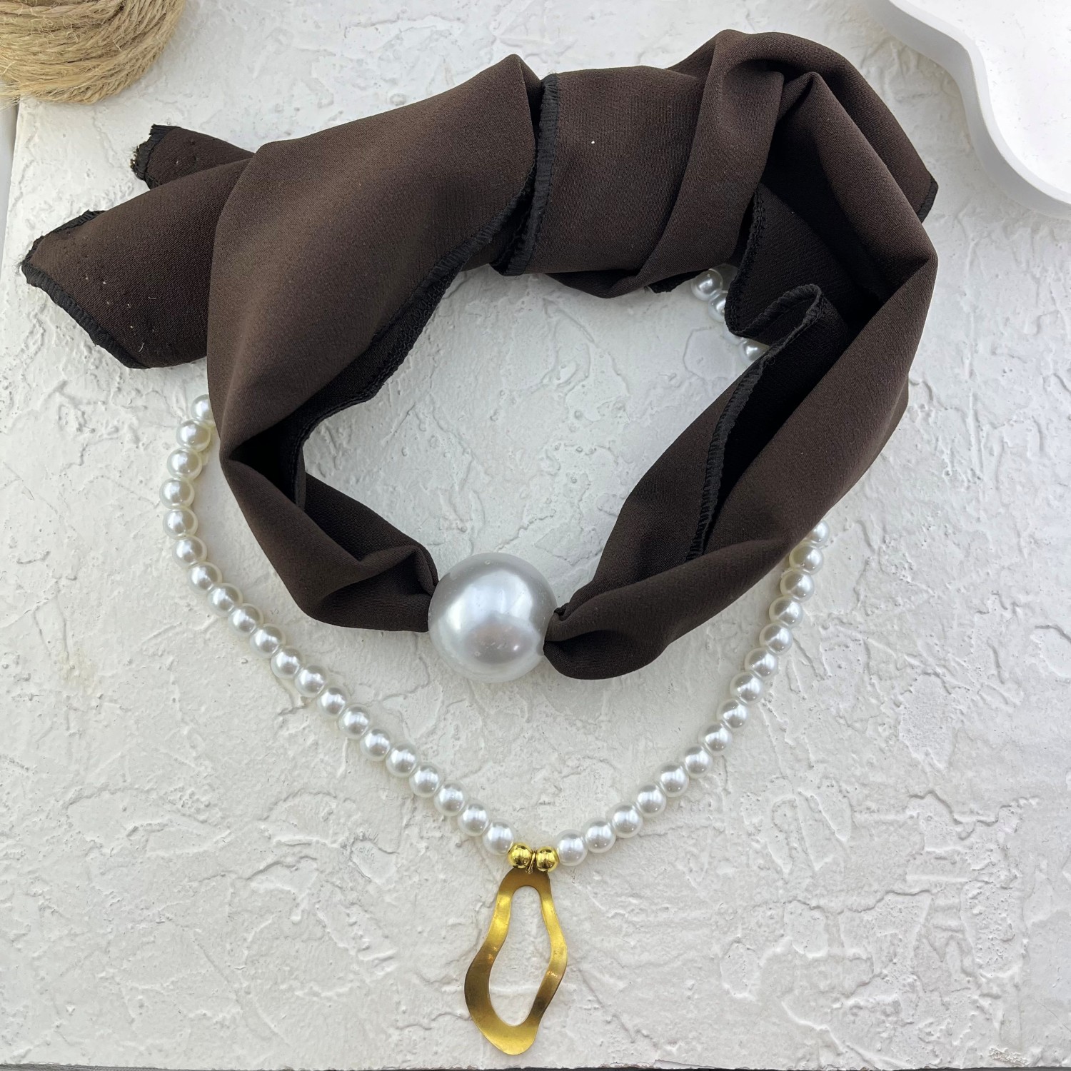 گردنبند زنانه پارچه ای دو لاین مدل مروارید کد N5169