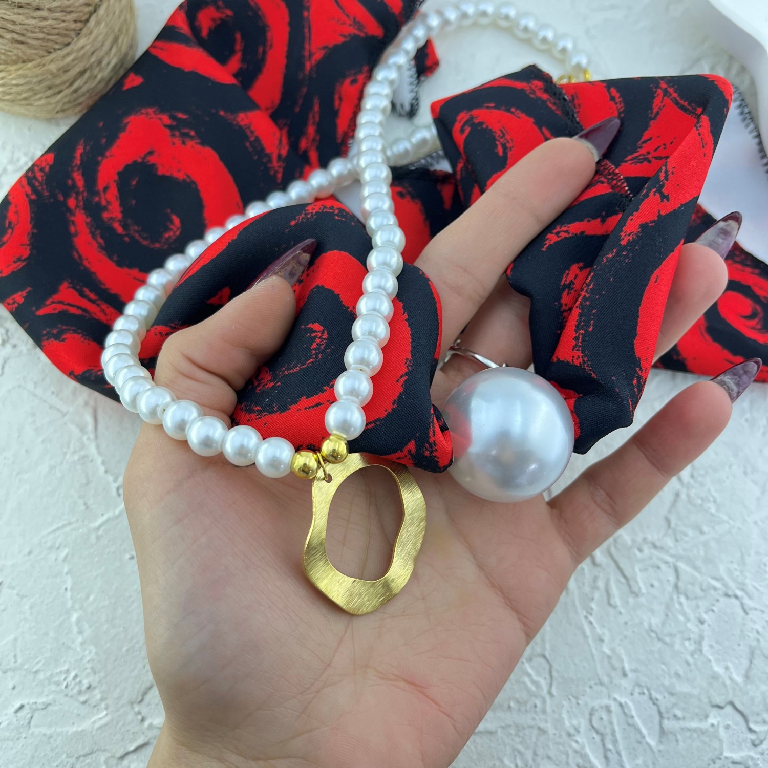 گردنبند زنانه پارچه ای دو لاین مدل مروارید کد N5175