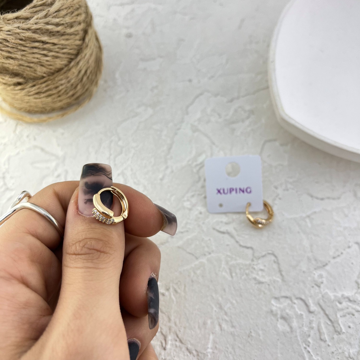 گوشواره زنانه ژوپینگ مدل نگین جواهری کد E6248