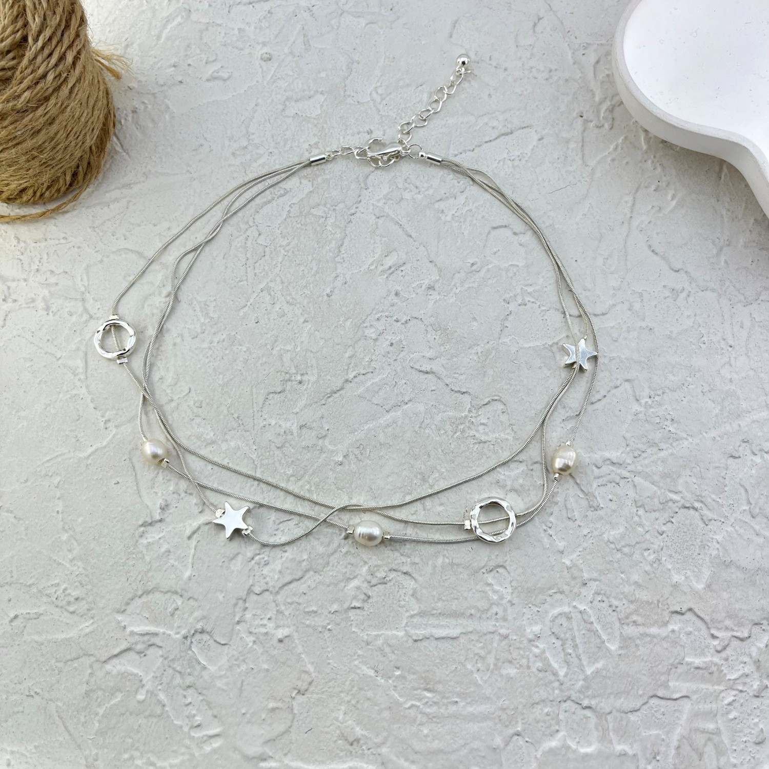 گردنبند زنانه مدل مینیمال اب نقره سه لاین کد N5183