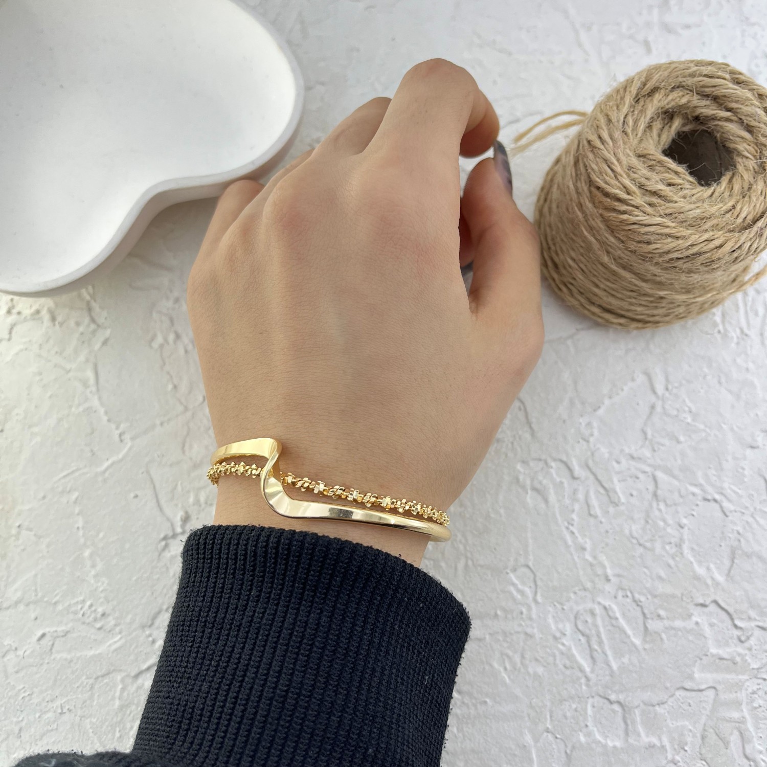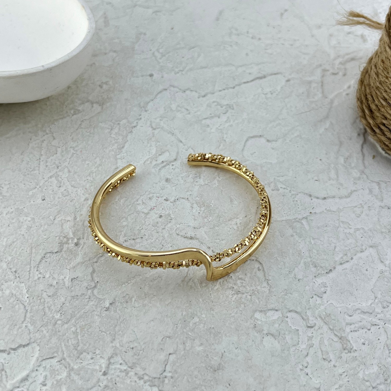 دستبند زنانه بنگل مدل موج و خاویاری کد B5448