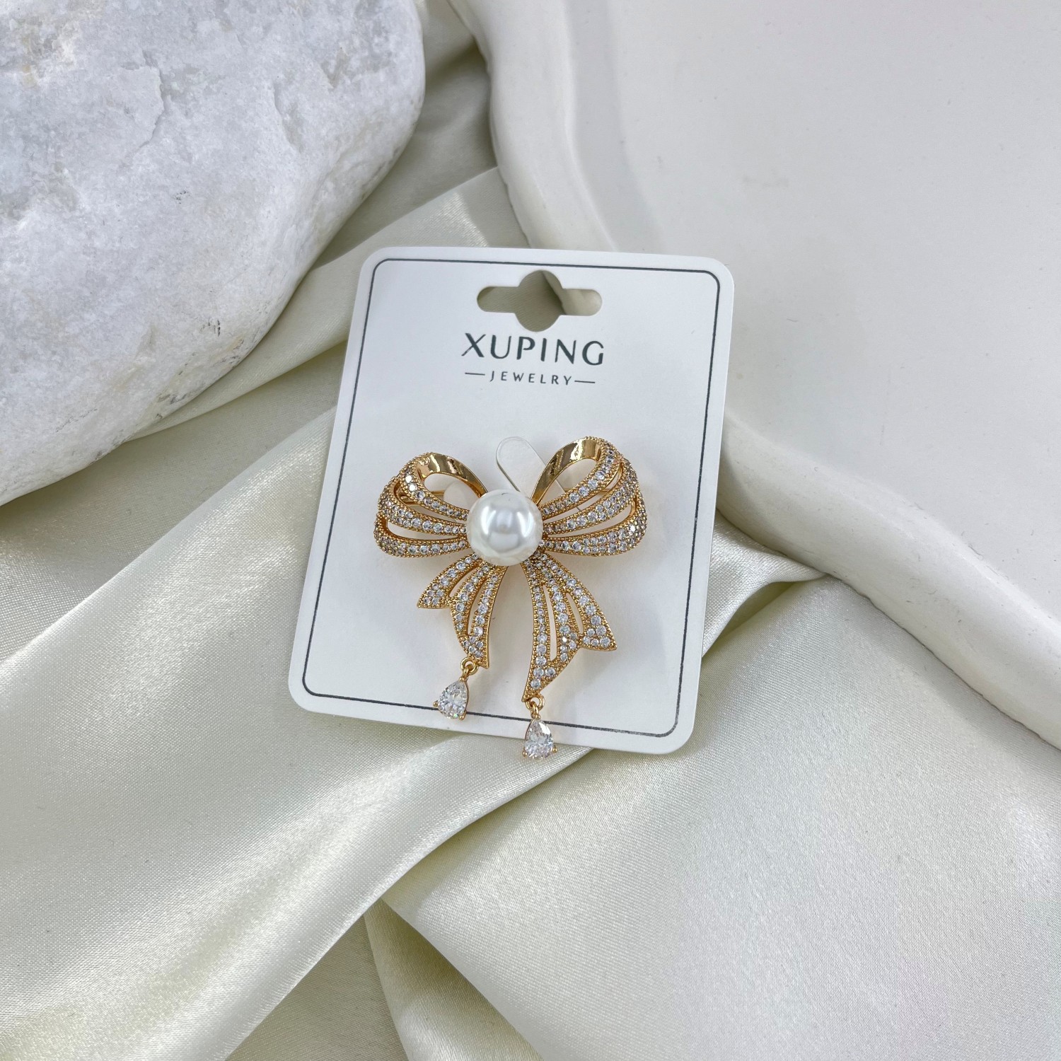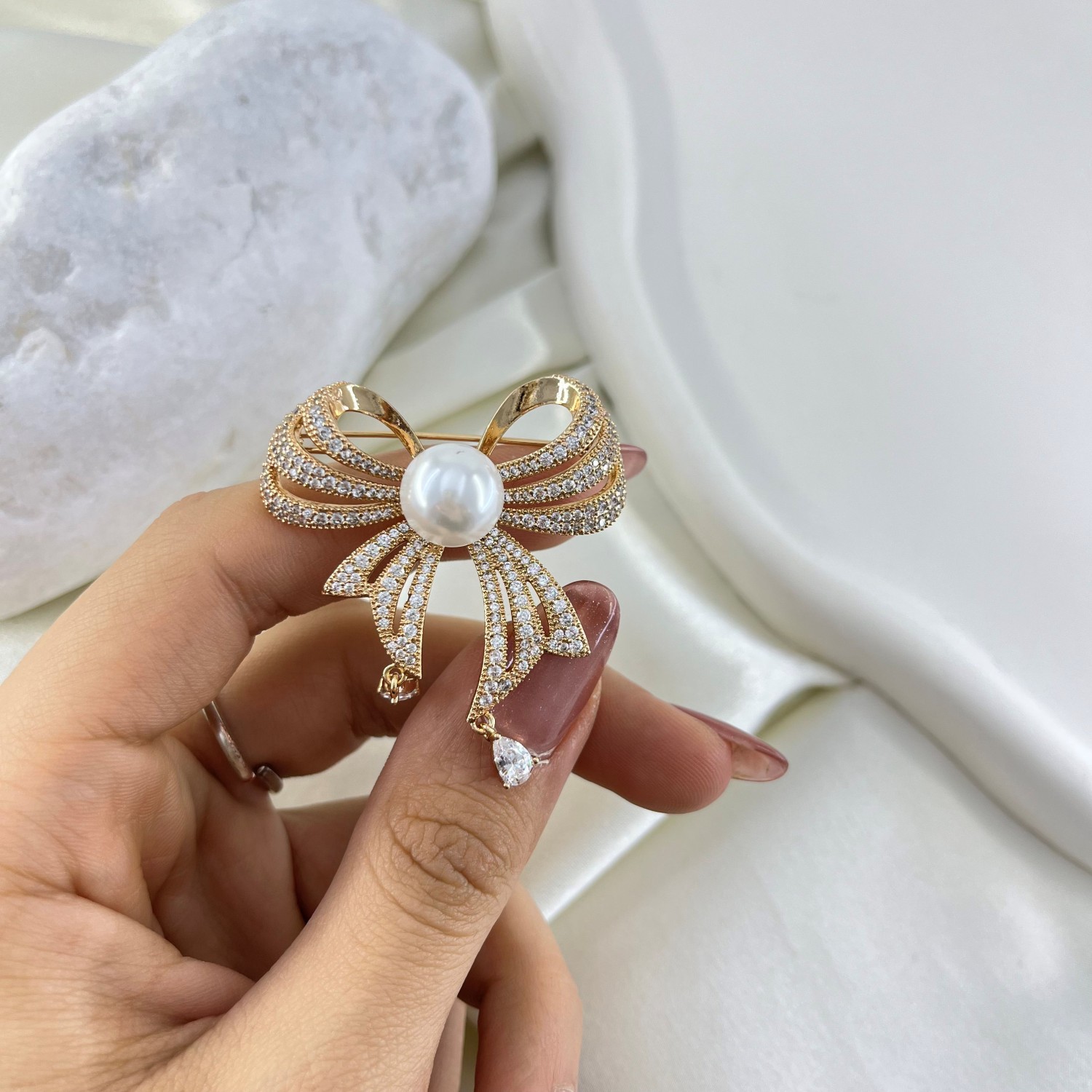گل سینه زنانه ژوپینگ مدل پاپیون و مروارید کد G4185