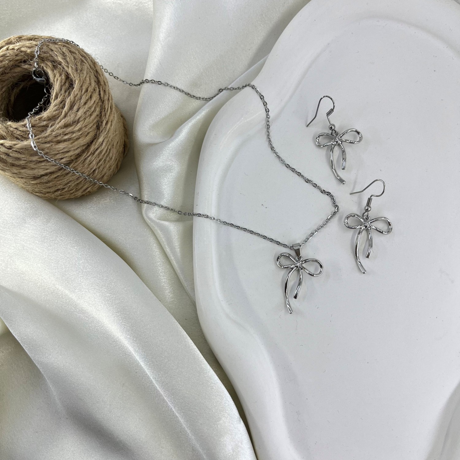 جزئیات: 45 سانتیمتر زنجیر و پلاک حدود 30 در 20 میلیمتر و گوشواره حدود 35 در 20 میلیمتر / رنگ ثابت و ضد حساسیت